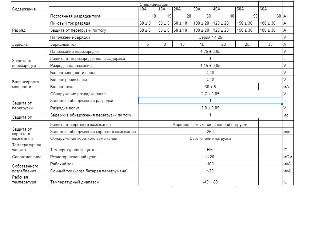 - Защита от перезаряда 4,25 В / переразряда 2,7 В