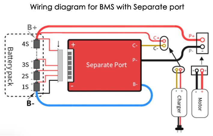 Существует два типа исполнения BMS – Separate Port (несимметричная) и Common Port (симметричная). Разница между ними в том, что первый тип имеет раздельное подключение к зарядному устройству и к нагрузке, у второго типа они объединены. У Separate Port ток заряда меньше, чем ток отдаваемый в нагрузку, у Common Port – одинаковы.