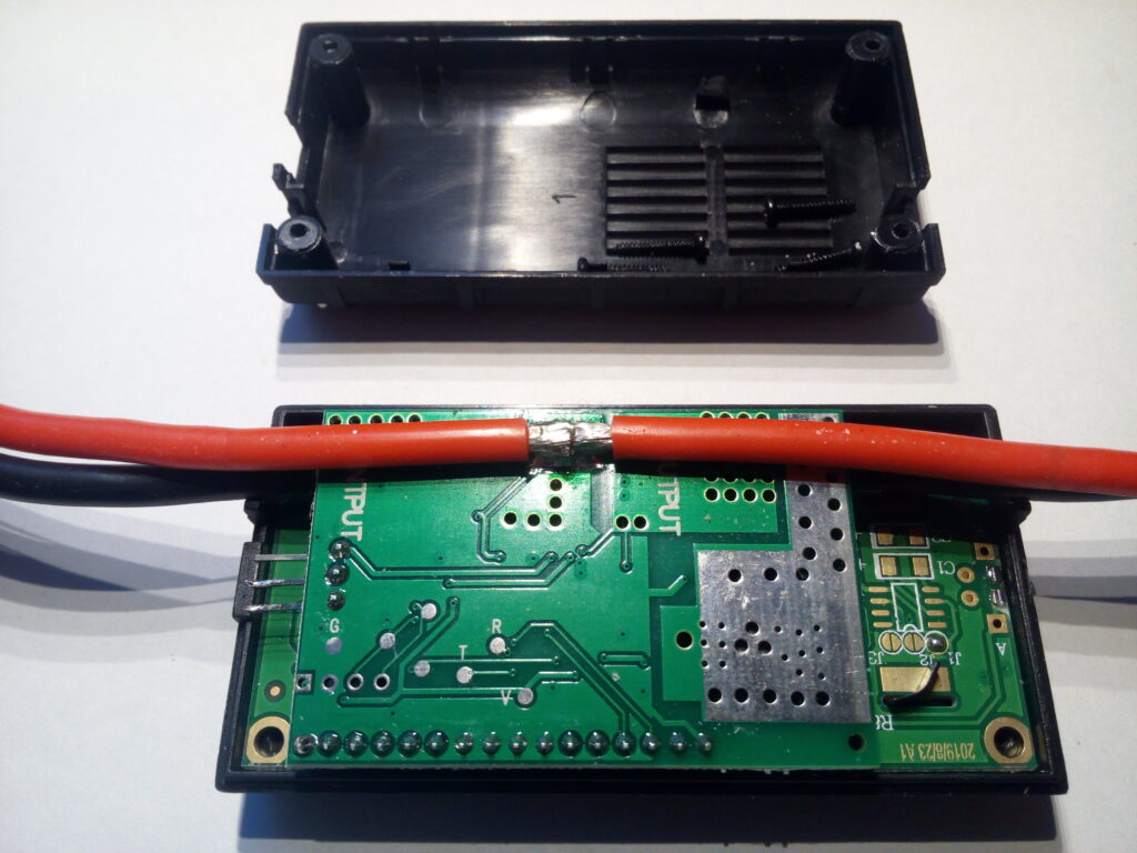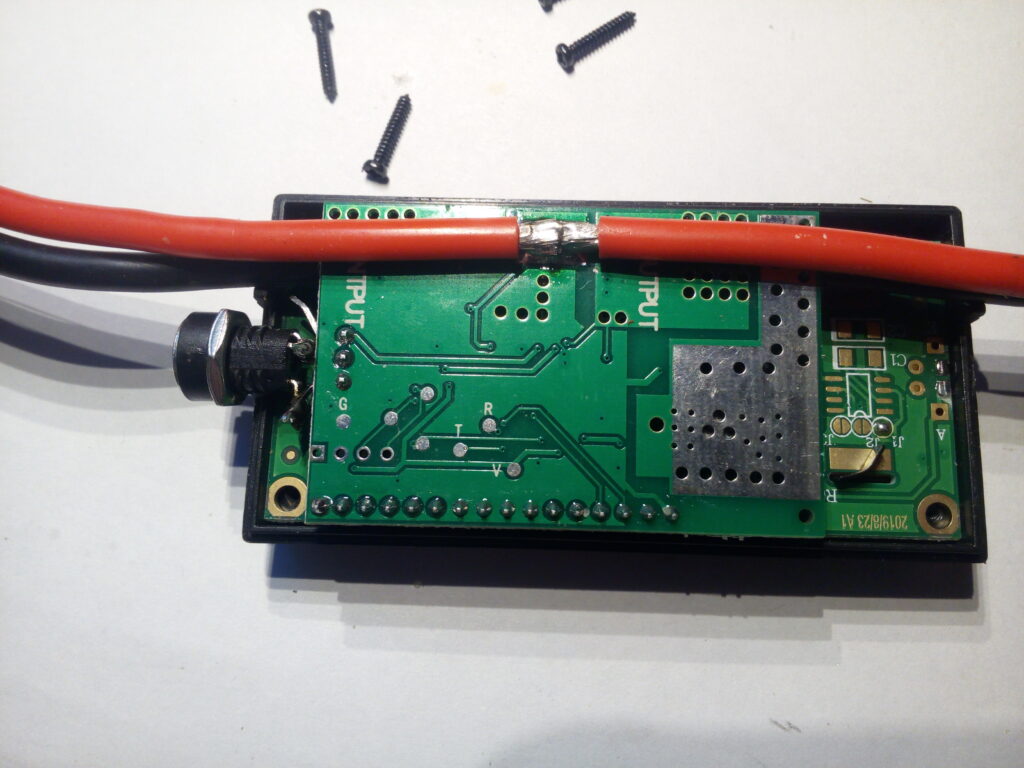 Ваттметр может питаться от измеряемой линии, если напряжение в ней более 4,7 В. Энергонезависимой памяти у него нет и при отключении измеряемой цепи он не сохраняет измеренные значения и все показания сбрасываются. Чтобы они сохранялись, должно быть подключено внешнее питание с напряжением от 4,7 до 60 В. В корпусе есть отверстие внутри которого расположен трёх-штырьковый разъём:
