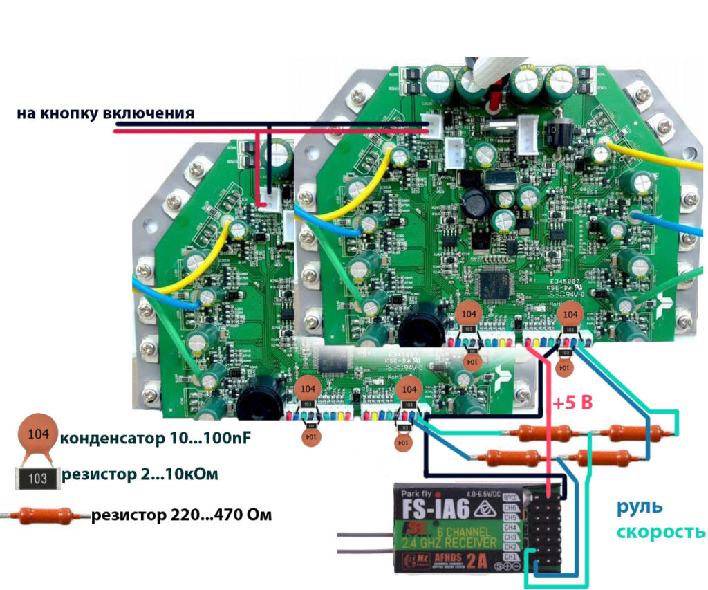 Подключение двух контроллеров гироскутера к одному приемнику Читать дальше