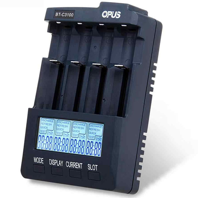 Зарядное устройство Opus BT-C3100V2.2 подойдет для: Характеристики Режим Charger (Заряд). Полный заряд. При завершении процесса на дисплее мигает “Full”. Режим Discharge (разряд). Режим для полного разряда NiCd, NiMH аккумуляторов. В процессе разряда измеряется ёмкость аккумулятора. При завершении процесса на дисплее мигает “Full”. Режим Quick Test (быстрое тестирование). Измерение внутреннего сопротивления. Режим Test (тестирование). Заряд-разряд-заряд. В процессе разряда подсчитывается ёмкость аккумулятора.