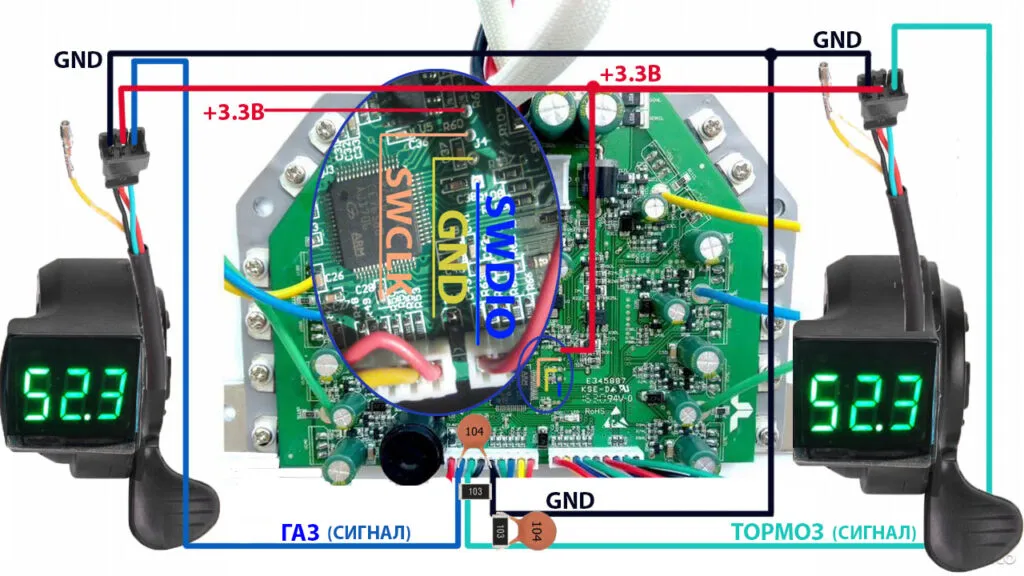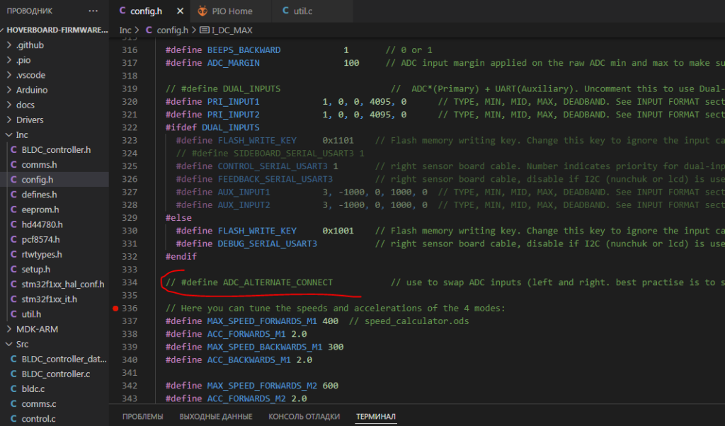 Обратите внимание, что в отличие от прошивки «ховеркар» линии тормоза и газа меняются местами. В теории для программной смены местами курков должна служить эта строчка, но у меня это не сработало.